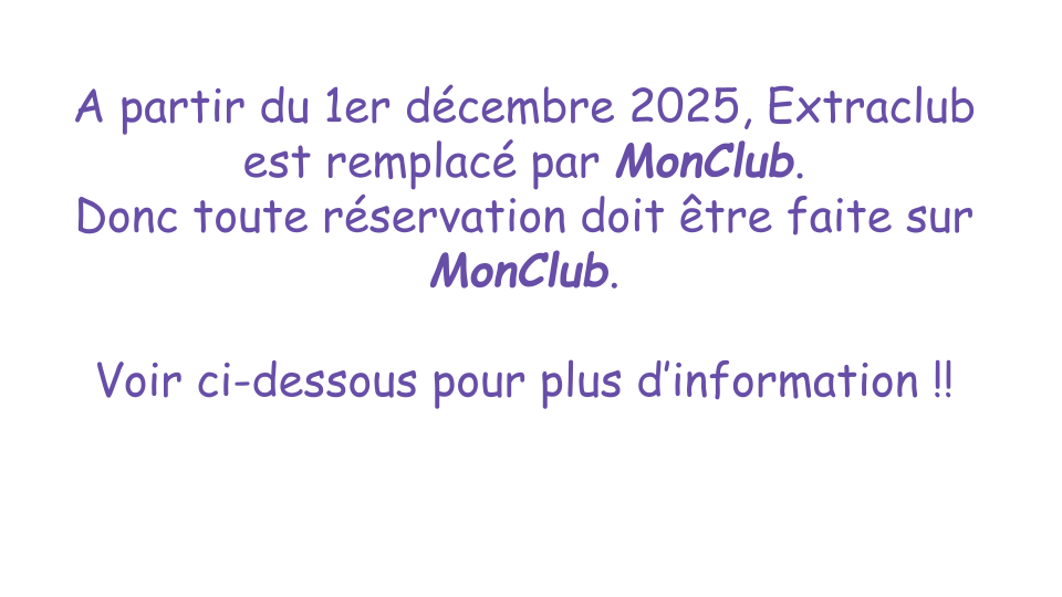 Toutes les inscriptions se font via MonClub, que ce soit pour l’inscription à la section, au Multipass, aux cours en groupe ou aux activités individuelles. Télécharger les documents: Présentation de MonClub, S’inscrire à une formule sur smartphone, S’inscrire à un cours sur Smartphone pour avoir toutes les explications ! A bientôt,
