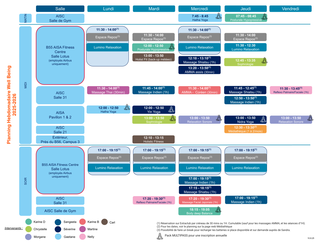 Une section née d’un désir de proposer des activités contribuant au bien-être des employés d’Airbus et de leur famille. Diverses techniques et approches de bien être vous sont proposées pour vivre et apprécier un mieux-être dans votre quotidien.